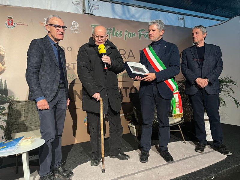 Nella stessa giornata Fondazione San Miniato Promozione ha voluto dare un premio anche a Giorgio Morelli, 94enne tartufaio di lunghissimo corso ed ex presidente dell’Associazione Tartufai dal 1985 al 2000.