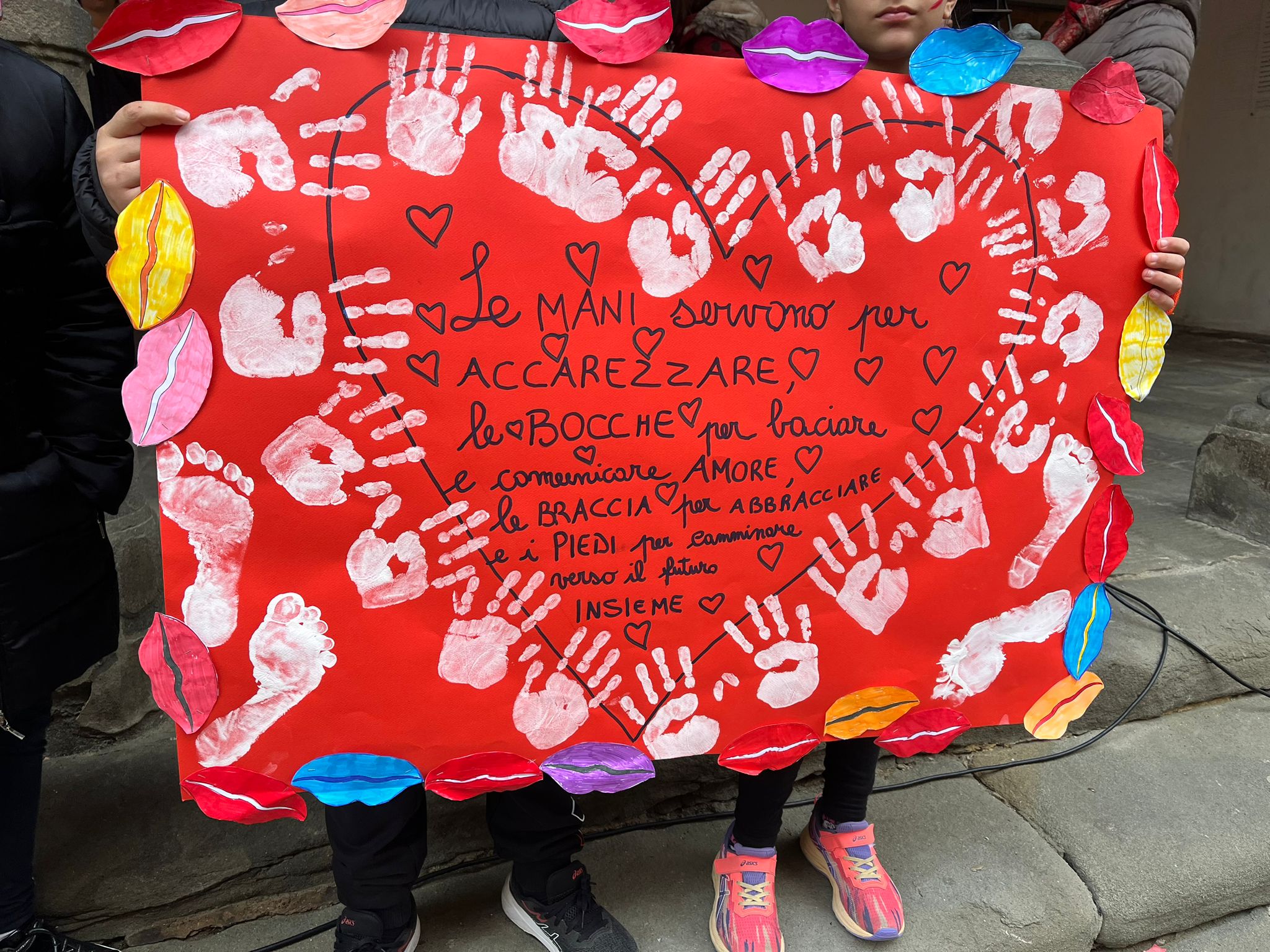Bambine e bambini, commercianti, associazioni e istituzioni hanno unito le proprie voci per dire “Basta” alla violenza di genere. Nell’ambito delle celebrazioni per la Giornata internazionale per l’eliminazione della violenza sulle donne (25 novembre), l’Amministrazione Comunale ha organizzato il flash mob “Insieme contro ogni violenza sulle donne” che si è tenuto questa in Piazza Bertoncini, davanti il Palazzo Comunale. È stata una manifestazione corale che ha coinvolto oltre 100 gli studenti elementari e medie, dipendenti del Comune, varie associazioni di volontariato, culturali e sportive, commercianti e normali cittadini e cittadine che hanno raccolto la “call to action” del Comune.