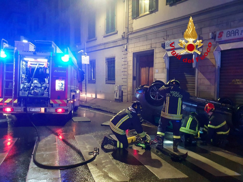In via della Mattonaia a Firenze, invece, un'auto si è ribaltata dopo aver colpito il cordolo di separazione delle carreggiate vicino a un semaforo. I vigili del fuoco hanno liberato il conducente rimasto con un braccio incastrato nella vettura per poi affidarlo ai sanitari inviati dal 118.