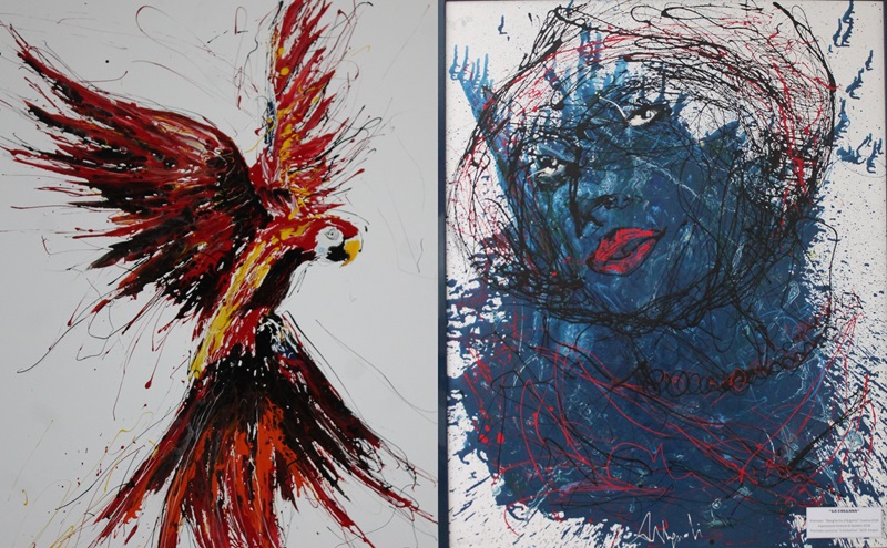 “La mostra si compone di diversi lavori che evidenziano prevalentemente la nuova tecnica intrapresa dall’artista negli ultimi anni dove il colore non viene usato con pennello e spatola ma gocciolato o gettato sulle tele in modo energico, nei punti giusti, dove si intreccia e si sovrappone, si confonde e si amalgama creando volti, paesaggi, animali, figure molto leggibili.