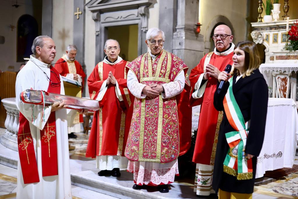 “Un dono in segno di comunione e collaborazione per il bene comune della nostra città”. Con queste parole il proposto don Guido Engels, insignito della massima onorificenza, il Sant’Andrea d’Oro, insieme ai tre gruppi Scout di Empoli, ha ricevuto il dono della cera da parte del Comune alla Chiesa durante la celebrazione della santa messa in Collegiata, in occasione del Santo Patrono della città, giovedì 30 novembre 2023.«Una secolare tradizione che parte da lontano e che ogni anno rinnoviamo con il dono di una cera da parte dell’amministrazione comunale alla nostra Collegiata nella giornata del patrono della città – ha sottolineato la sindaca Brenda Barnini dopo aver consegnato la cera -. È sempre un momento molto emozionante perché è un simbolo della nostra vicinanza e mai come quest’anno credo si possa dire di aver seguito un cammino comune in questa nostra giornata che ho raccontato poche ore fa come una festa per tutta la nostra comunità. Dopo la cerimonia di consegna del Sant’Andrea d’0ro, dove sono stati insigniti i gruppi scout di Empoli e don Guido, direi che non c’era modo migliore per dare seguito a quello che tante volte ci siamo detti: di contare sulla collaborazione, sulla coesione, sulla capacità di fare del proprio meglio all’interno della nostra comunità. Questo è il senso anche della cerimonia del Sant’Andrea d’Oro e questo è anche il significato profondo del dono che il Comune fa alla Chiesa».