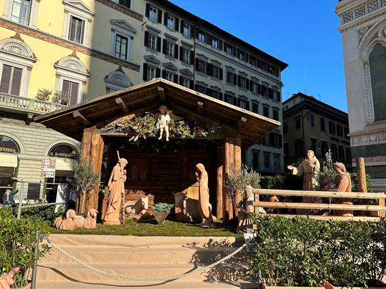 Per il tredicesimo anno consecutivo, l’Opera di Santa Maria del Fiore realizza sul sagrato del Duomo di Firenze, dove rimarrà fino all’Epifania, un presepe con statue in terracotta a grandezza naturale