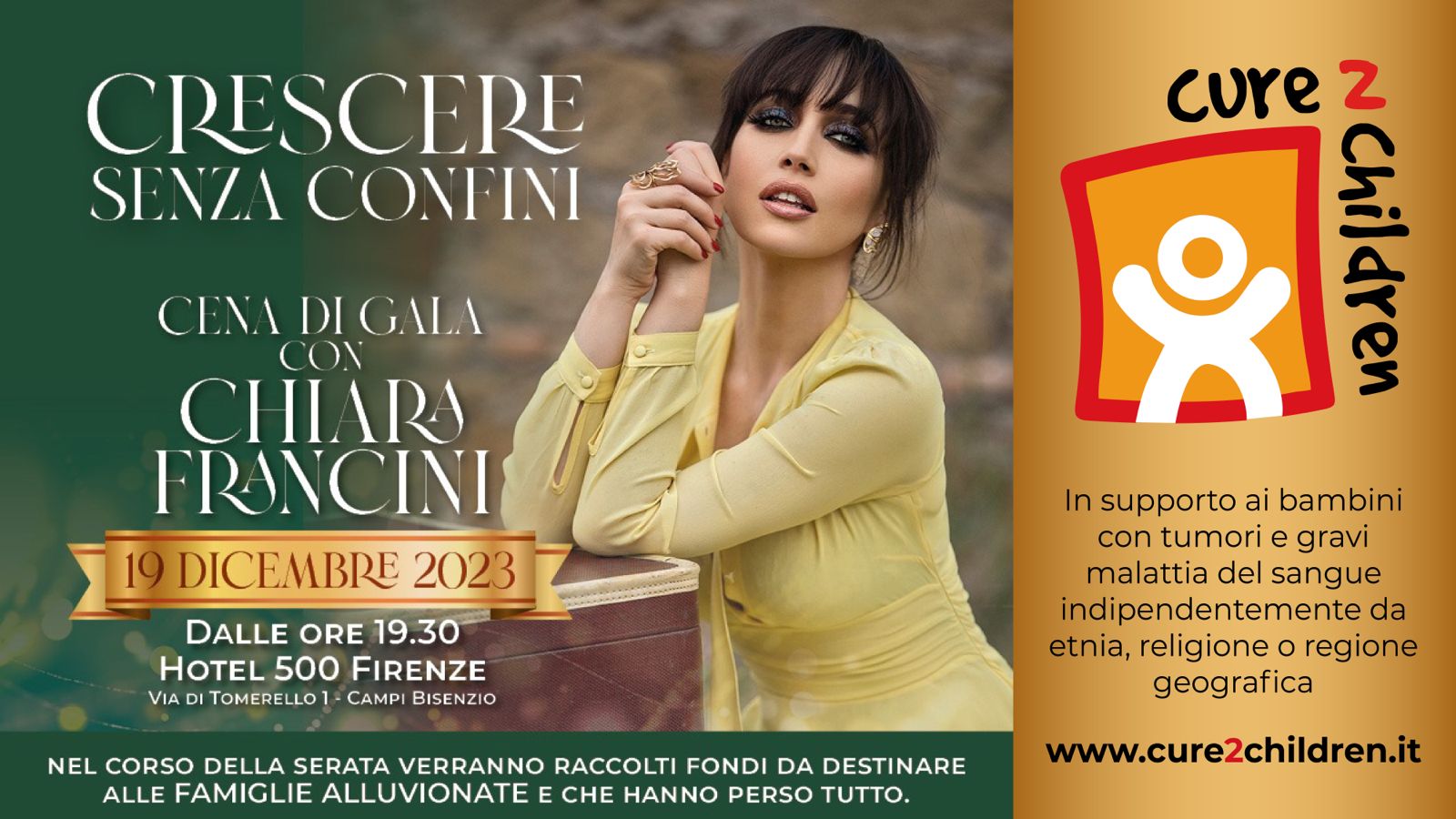 Un evento di beneficenza per i bambini affetti da patologie oncologiche in Camerun e per gli alluvionati di Campi Bisenzio. E' la Cena di Gala “Crescere senza confini” organizzata da Fondazione Cure2Children in programma il 19 dicembre (dalle 19.30), all'Hotel 500 Firenze di Campi Bisenzio. Ospite d'onore sarà l'attrice e scrittrice Chiara Francini, ma sono attesi anche altri ospiti a sorpresa.