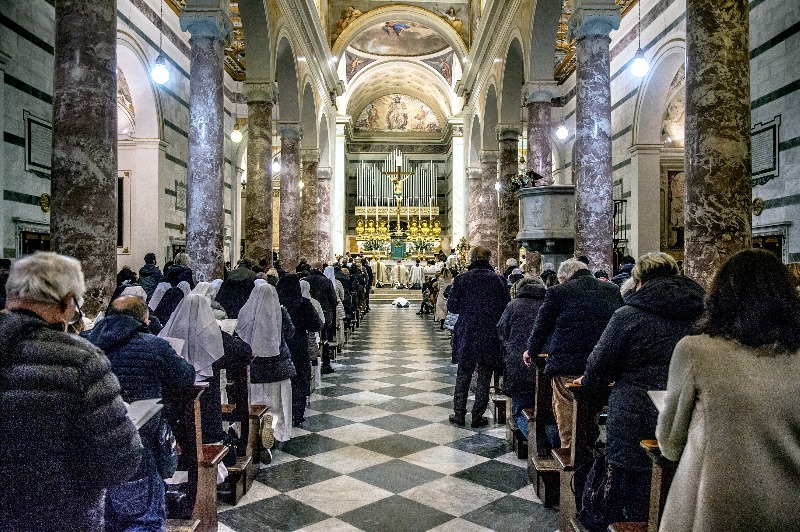 È stato consegnato ufficialmente alla storia il giubileo straordinario della Chiesa di San Miniato, in concomitanza, questo 8 dicembre, con la solennità dell’Immacolata Concezione. 400 anni dalla fondazione della diocesi (1622-2022), 400 anni di storia celebrati con un anno giubilare scandito a partire dai secondi vespri della domenica 4 dicembre 2022, in significativa coincidenza cronologica con l’emissione della bolla emessa da papa Gregorio XV il 5 dicembre 1622, che elevava la città della Rocca a sede episcopale. Fu monsignor Migliavacca, alla presenza del cardinale Betori e di una parte dell’episcopato toscano, ad aprire la porta giubilare della cattedrale nel dicembre di un anno fa. È stato monsignor Giovanni Paccosi a chiuderla ieri, con una solenne liturgia che includeva anche l’ordinazione diaconale del seminarista Alfonso Marchitto e il rinnovo dell’affidamento della diocesi alla Madonna.