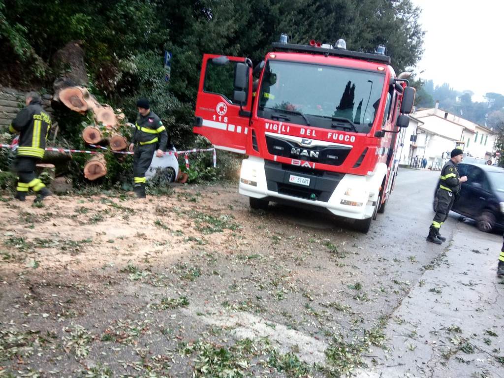 Un leccio è caduto abbattendosi su due auto parcheggiate in via Cosimo Ridolfi a Limite sull'Arno. Il fatto è avvenuto questa mattina e sono stati chiamati i vigili del fuoco di Empoli per la rimozione del grosso tronco. Una Fiat Punto e una Citroen C3, parcheggiate negli stalli lungo il muro di contenzione, sono rimaste colpite dall'albero. Non ci sarebbero feriti