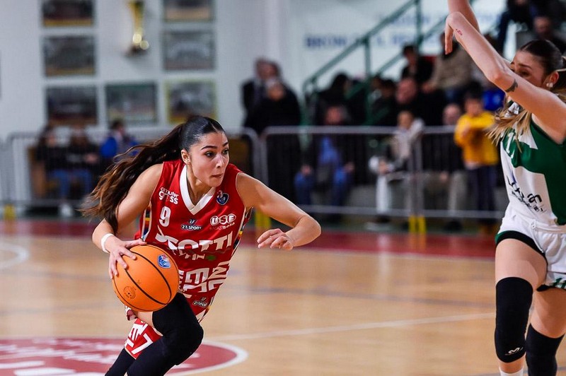 Al di là di questo episodio fortuito, i 26 punti subiti sono un brutto segnale. Stoichkova sbaglia un canestro fatto e Grassia la punisce sul fronte opposto con quattro punti: 62-51. La risposta è nella tripla di Castellani ma subito dopo Grassia, ancora con un tiro fortunoso, mette il 67-54. C’è un tecnico a Miscenko (quarto fallo), altro segno che la gara sta scappando di mano anche perché a Broni va bene di tutto. Al 4’ siamo 70-54 ma la Scotti non molla. Miscenko torna a segnare e Castellani, con un gioco da tre, mette il 72-64 e dopo, dalla lunetta, il 72-66 a 2 minuti dalla sirena. Gara riaperta. Un antisportivo su Patanè consente alle biancorosse di segnare il 74-70 con palla in mano. Villaruel sbaglia la tripla e Miscenko commette il quinto fallo.