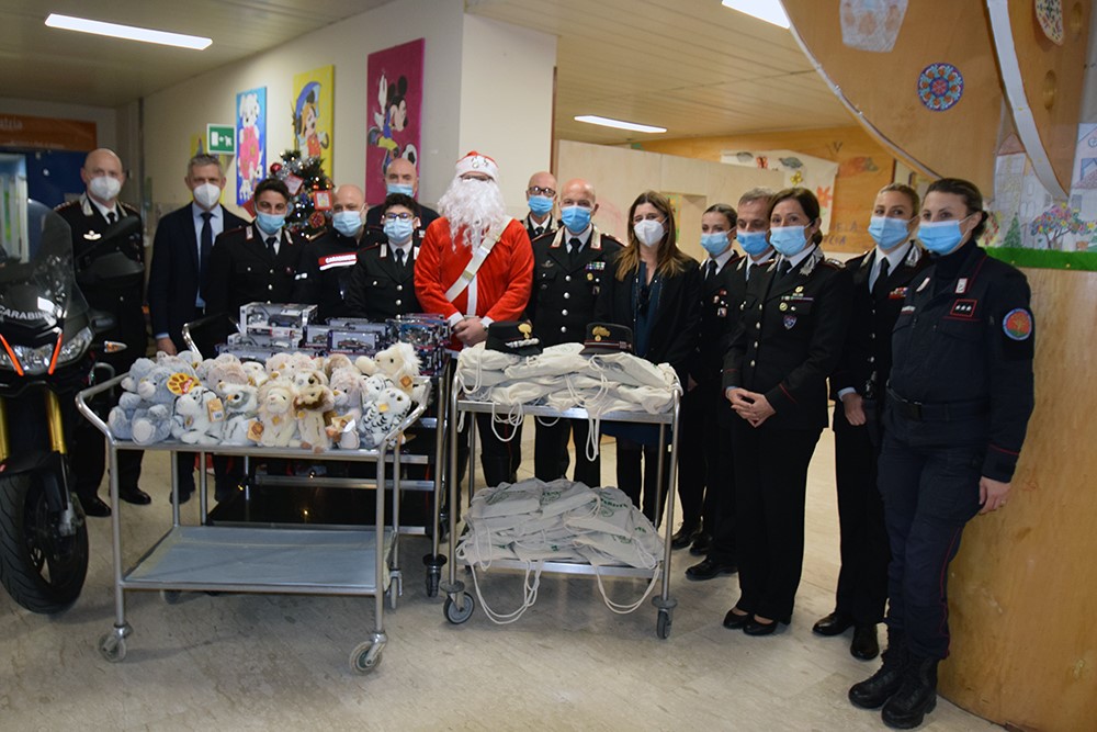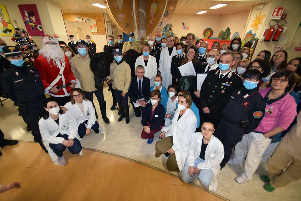 Bellissima e piacevole sorpresa per i piccoli pazienti ricoverati nel Dipartimento della Donna e dei bambini e in Neuropsichiatria infantile. All’Azienda ospedaliero-universitaria Senese è infatti arrivato un Babbo Natale speciale dei Carabinieri, insieme ad un cavallino di Monterufoli, per portare doni e sorrisi a tutto l’ospedale. L’iniziativa è stata organizzata dall’Arma dei Carabinieri, in tutte le sue articolazioni, territoriale e forestale. «Ringrazio di cuore a nome di tutto l’ospedale – dichiara il professor Antonio Barretta, direttore generale dell’Aou Senese – le donne e gli uomini dell’Arma, che hanno dimostrato ancora una volta una grande vicinanza alla nostra realtà, ai nostri professionisti e soprattutto ai nostri piccoli pazienti, che oggi hanno vissuto una bellissima giornata ricca di sorprese, un modo per allietare questo periodo che stanno trascorrendo in reparto proprio quando ci stiamo avvicinando al Natale». Oltre al professor Barretta, ad accogliere il Babbo Natale dell’Arma dei Carabinieri era presente la direttrice sanitaria Maria De Marco e tutto il personale che quotidianamente si prende cura dei piccoli pazienti del policlinico Santa Maria alle Scotte.