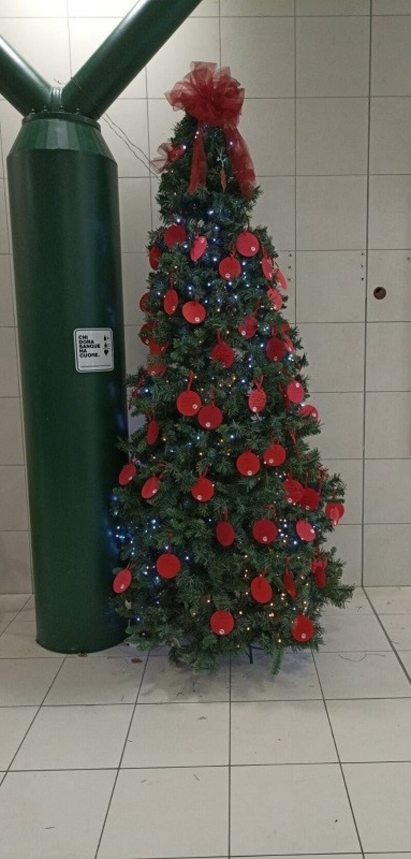 Quest’anno l’albero di Natale in Ospedale è stato realizzato grazie al contributo dell’Associazione Avo che per l’occasione ha creato sfere di cartoncino di colore rosso su cui i pazienti e il personale sanitario hanno scritto un pensiero di auguri. E' possibile richiedere la sfera in portineria all'ingresso del presidio ospedaliero per poter lasciare il proprio messaggio di auguri.