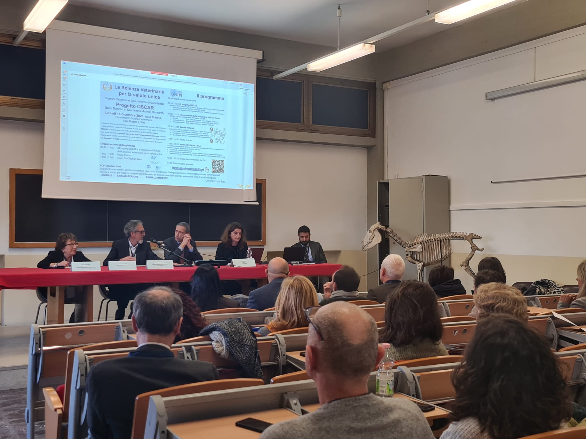 Un polo pisano per la salute unica che comprenda animali, persone e ambiente, il primo che potrebbe diventare realtà in Toscana considerato che, nel panorama regionale, Scienze veterinarie è presente solo all’Università di Pisa. E’ questo l’obiettivo ambizioso del progetto di Oscar (Open Science in Co Creative Animal research) grazie al quale il dipartimento di Scienze veterinarie di Unipi è stato selezionato e finanziato come dipartimento di eccellenza dal Ministero dell’Università e della Ricerca per il quinquennio 2023-2027. Oscar è stato ufficialmente presentato lunedì 18 dicembre al Dipartimento di Scienze Veterinarie dal direttore Francesco Di Iacovo, dal rettore dell’Università di Pisa Riccardo Zucchi e dalla presidente della Società Scientifica di Medicina Veterinaria Adriana Ianieri.