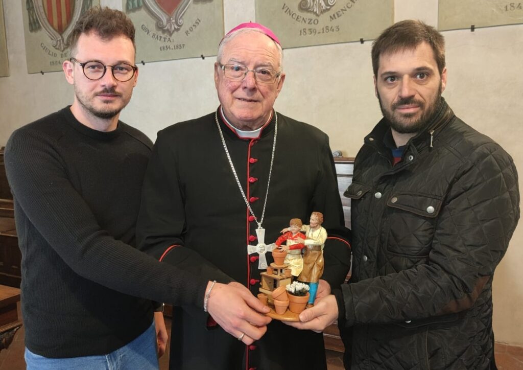 È dedicato alla formazione e al passaggio dei saperi il personaggio del presepe 2023. La statuina di un apprendista vasaio è stata consegnata ai Vescovi delle due Diocesi provinciali: Monsignor Fausto Tardelli, Vescovo di Pistoia, e Monsignor Roberto Filippini, Vescovo di Pescia.