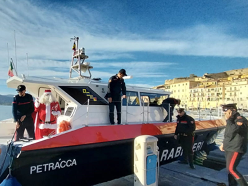 I carabinieri della compagnia di Portoferraio hanno “scortato” Babbo Natale portando doni e facendo gli auguri di Natale. Babbo Natale è arrivato sull’isola a bordo della Motovedetta dei Carabinieri N807 “Petracca” attraccata al molo “Porta a Mare”.
