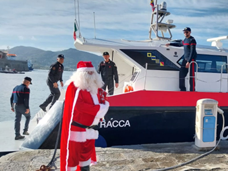 I carabinieri della compagnia di Portoferraio hanno “scortato” Babbo Natale portando doni e facendo gli auguri di Natale. Babbo Natale è arrivato sull’isola a bordo della Motovedetta dei Carabinieri N807 “Petracca” attraccata al molo “Porta a Mare”.