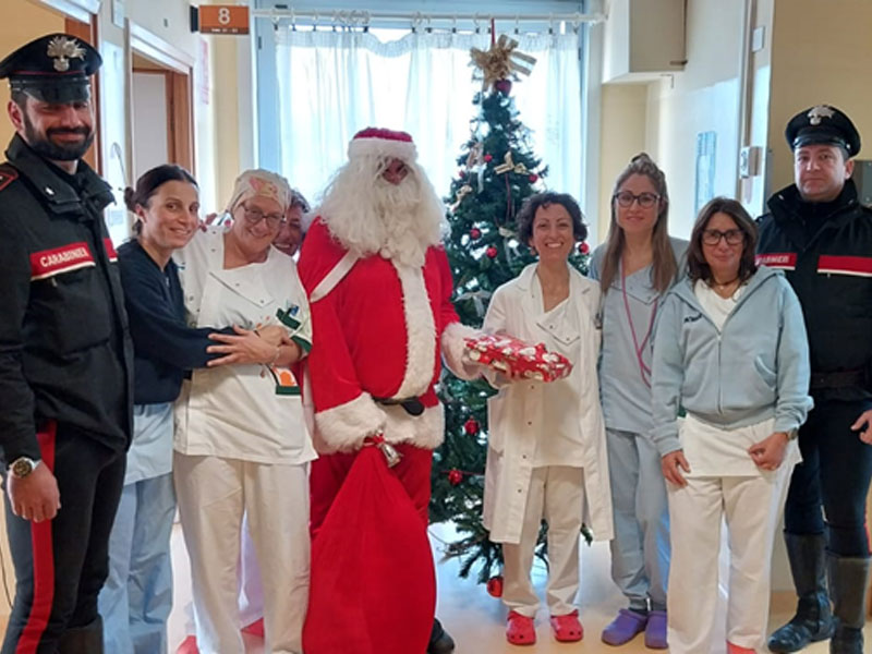 Babbo Natale ed i carabinieri hanno lasciato in dono al reparto numerosi gadget a testimonianza della solidarietà e vicinanza a coloro, soprattutto i più piccoli, che attraversano un periodo di sofferenza.