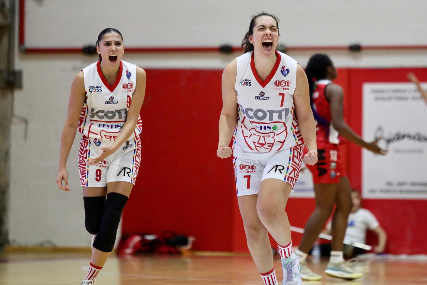 Dalla partita più bella a quella più amara è un attimo. La tripla nel finale di Cerino spegne lo splendido e meritato sogno dell’Use Rosa Scotti di battere la corazzata Derthona. Finisce 62-69 per le ospiti ma buttarla giù è maledettamente dura perché le biancorosse questa vittoria l’avrebbero meritata, eccome, per come hanno giocato, per il cuore che ci hanno messo, per dire grazie con due punti a Villaruel e Patanè, in campo con la febbre. Ed invece niente da fare. Il Pala Sammontana capitola per la prima volta in questa stagione e i due punti prendono la via di Derthona della ex Valentina Baldelli, salutata come merita da tutto l’ambiente biancorosso. Motivi per vedere il bicchiere mezzo pieno ce ne sono, eccome, ma dopo la partita l’amarezza annebbia inevitabilmente tutto e quindi, solo dopo il panettone, si riuscirà ad apprezzare il fatto che questa è decisamente un’altra squadra rispetto a quella, troppe volte impacciata, vista nei primi mesi del campionato.Manetti è in panchina col naso rotto e, se si considera chi c’è davanti, l’avvio delle compagne è il migliore di quest’anno. Alzi gli occhi verso il tabellone e non ti pare vero perché Miscenko, Patanè e Merisio hanno già firmato l’11-0. Melchiori muove il tabellino ospite e Baldelli riavvicina Derthona fino al 15-12. La Scotti tiene botta con Miscenko e Merisio ed al 10’ siamo 22-15. SI riparte e l’Use Rosa continua ad aggredire una Derthona che pare svagata di testa tanto che, dopo il 28-18 di Castellani, arriva il massimo vantaggio con Stoichkova: 30-18. Qui stessa musica. Derthona si rifà sotto fino al 34-32 di Attura ed ecco che Miscenko ed una tripla a testa di Castellani e Ruffini riportano il sereno: a metà 42-32. La terza frazione è la più difficile come diranno i numeri: 6-15. La Scotti fatica a trovare la via del canestro, gli arbitri fischiano molto più da una parte che dall’altra e Derthona si aggrappa alle sue stelle. Coach Cioni fa i miracoli anche perché ha Patanè e 3 falli e trova minuti importanti da Avonto. Il sorpasso arriva sul 46-47 ma Miscenko che replica con un appoggio da sotto fa capire che in casa Scotti, di mollare, nessuno ha voglia. Al 30’ siamo 48-47 ed il Pala Sammontana ci spera quando ancora Miscenko segna il 60-55. Qui c’è una a dir poco sospetta infrazione di passi non fischiata ed Attura ringrazia con la tripla del 60-60. L’ultimo botta e risposta prima della volatona finale è fra Castellani e Melchiori sul 62-62 a poco più di un minuto dalla sirena. Siamo alla resa dei conti. La tripla di Stoichkova dall’angolo non entra mentre quella di Cerino sì: 62-65 a 27 secondi dallo stop. L’Use Rosa ci prova ma non trova il tiro buono rifugiandosi, inevitabilmente, nel fallo sistematico col quale Attura certifica il 62-69 finale. Dopo Broni viene ancora da dire: peccato.62-69USE ROSA SCOTTICastellani 11, Patanè 10, Stoichkova 12, Merisio 5, Miscenko 16, Fiaschi ne, Ruffini 5, Avonto 2, Villaruel 1, Manetti ne, Antonini, Casini ne. All. Cioni (ass. Ferradini/Giusti)AUTOSPED DERTHONA BASKETMarangoni 4, Cerino 10, Gianolla 8, Attura 25, Melchiori 9, Espedale ne, Leonardi 1, Baldelli 9, Thiam 3, Castagna ne. All. Cutugno (ass. Cerini/Lazzari)Arbitri: Mammola e Spirello di Marnate (Varese)Parziali: 22-15, 42-32 (20-17), 48-47 (6-15), 62-69 (14-22)