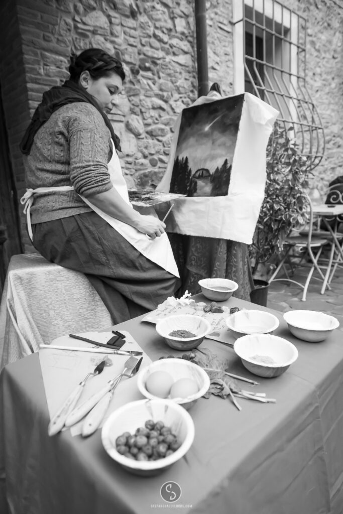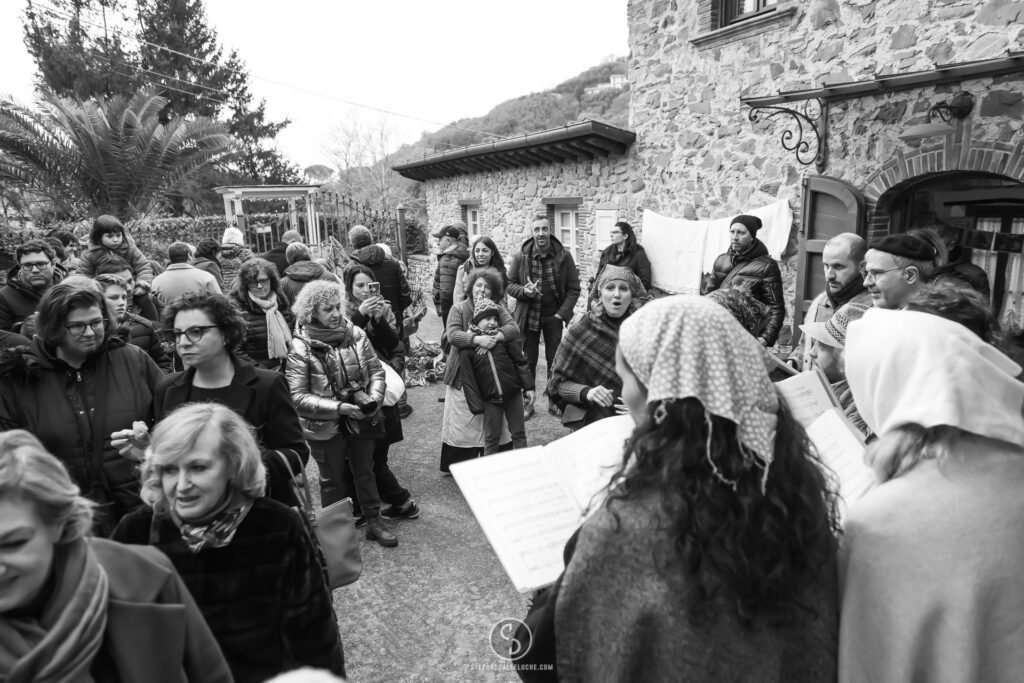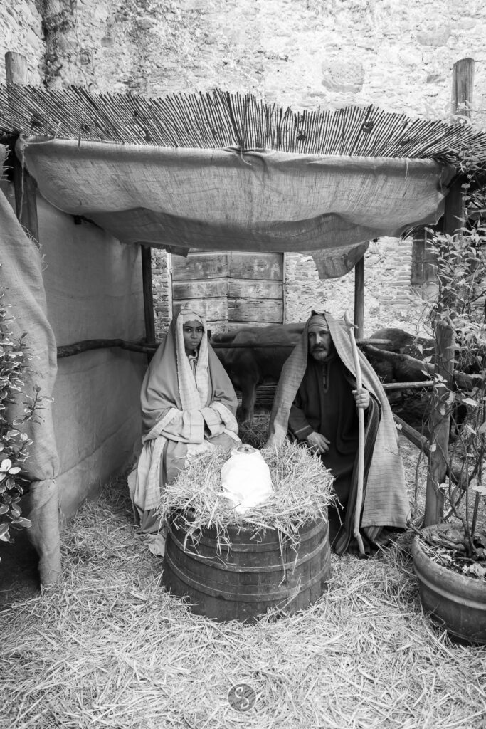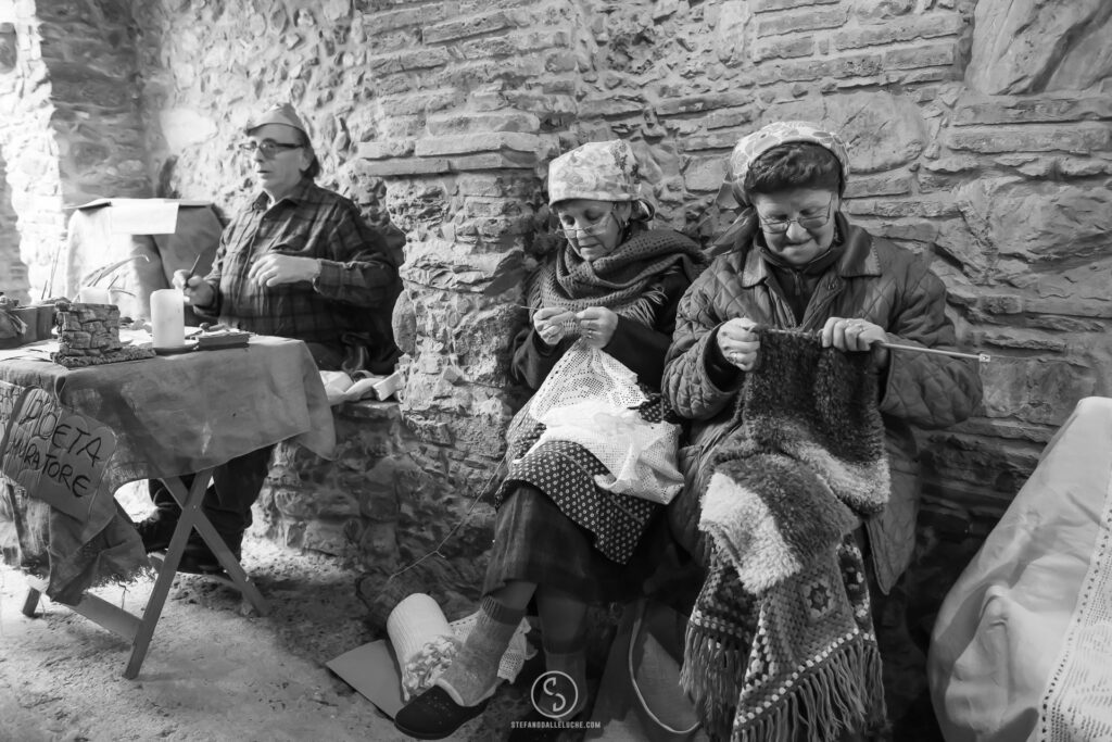 Disseminati in ogni angolo del borgo, i figuranti hanno vestito i panni delle statuine del presepe. Rappresentati i mestieri più antichi e tradizionali, dal falegname al boscaiolo, fino alle lavandaie con la biancheria a bagno nelle fonti di pietra. Un tuffo nel passato nel quale, ovviamente, non è mancata la natività nella capannuccia.