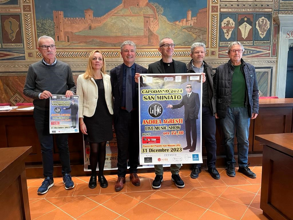 Dopo tre lunghi anni, torna il grande spettacolo dell’ultimo dell’anno in Piazza del Popolo. Ad organizzarlo sono il Comune di San Miniato e la Fondazione San Miniato Promozione e grazie al prezioso contributo della Fondazione CRSM, Icos Srl, Tecneco, Bottai Group, Leather Kem, Concerie Nuti Ivo Group, Calzaturificio Dover srl e Calzaturificio Il Quadrifoglio srl. Protagonista della serata l'autore, conduttore e musicista Andrea Agresti. A presentare il programma della serata sono il sindaco di San Miniato Simone Giglioli, l'assessore alla cultura Loredano Arzilli e Giovanni Rastrelli referente di zona dell’agenzia Vegastar di Pistoia.