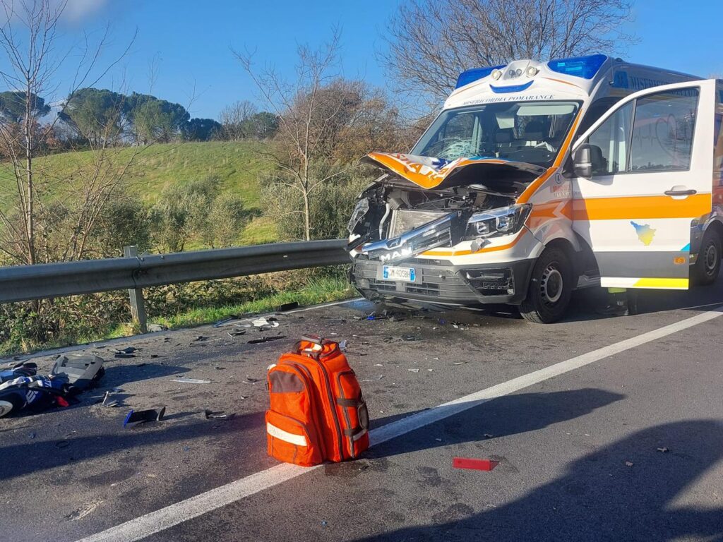 Incidente moto-ambulanza a Pomarance, grave il centauro