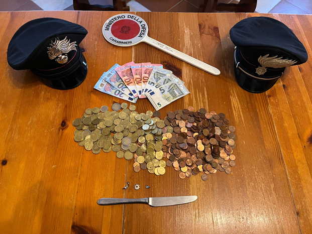 Infine è stato recuperato e sequestrato anche un coltello da cucina utilizzato dal ladro per forzare la cassetta delle offerte.