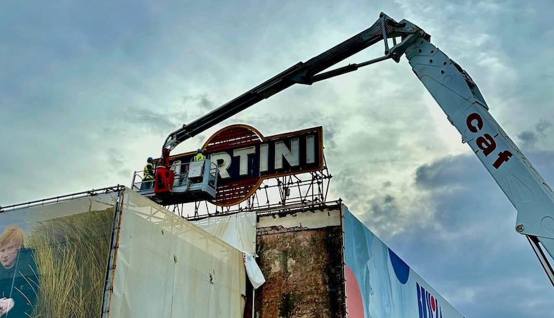 Questa mattina è stata effettuata la rimozione della mitica insegna Martini sul tetto dell’ex Arlecchino. Sarà restaurata con cura da parte di professionisti specializzati e poi reinstallata, sul nuovo edificio che sorgerà, come emblema di un passato straordinario.