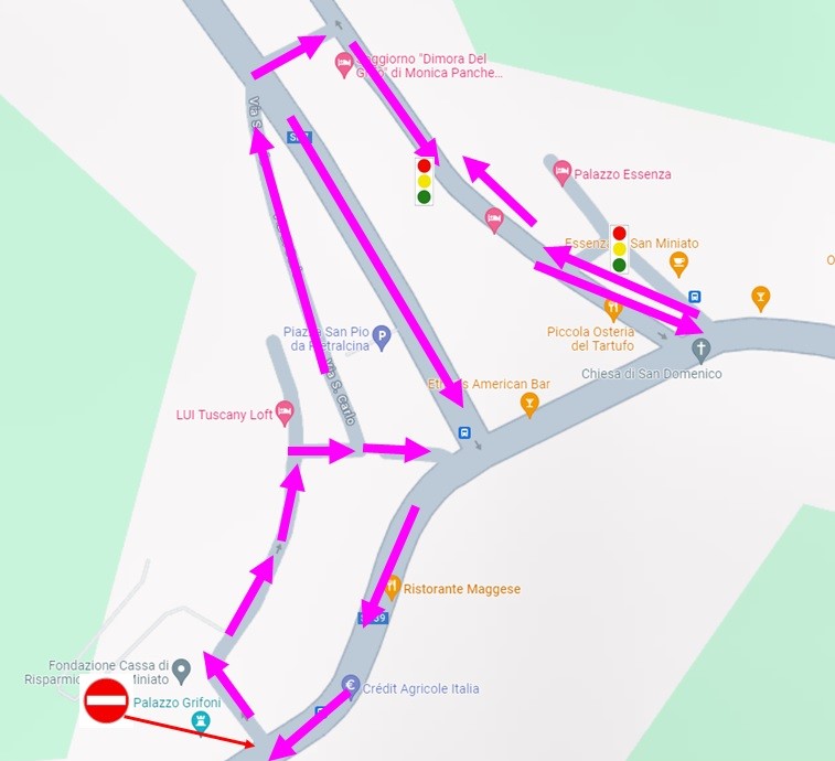 Dal 15 gennaio il traffico proveniente da via Roma, riservato solo alle auto, potrà raggiungere piazza del Popolo percorrendo via Carducci, Piazza Grifoni, via Borgonuovo, via della Cisterna, via San Carlo, Costa Santi Cosimo e Damiano, via Battisti. Il traffico proveniente da via Conti e diretto verso via Roma e via Catena, transiterà da piazza del Popolo, via Battisti, via Moro e via Guicciardini. Saranno inoltre riservati due stalli carico/scarico in piazza Padre Pio da Pietrelcina, e uno in Corso Garibaldi, dalle 9 alle 11 e dalle 16 alle 17, nei giorni feriali, per un massimo di 20 minuti. Dal prossimo fine settimana (20 e 21 gennaio) fino alla fine dei lavori del primo lotto (quella che riguarda la porzione di piazza antistante la chiesa di San Domenico), la Ztl sarà sospesa.
