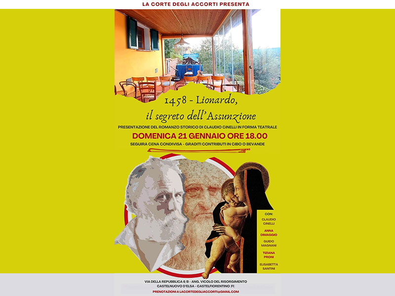 Domenica 21 gennaio alle 18.00 La Corte degli Accorti presenterà il romanzo storico di Claudio Cinelli "1458 – Lionardo – Il segreto dell’Assunzione" in forma teatrale.