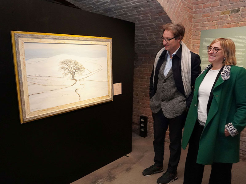 “Neri è diventato famoso in arte per i suoi paesaggi, delle Crete Senesi ma anche della Val d’Orcia” dice Scelfo. “Anche Mario Luzi ha usato la sua poesia per parlare di paesaggio. E qual è l’elemento in comune tra pittura e poesia? Il fatto che l’interpretazione che entrambi gli autori ne fanno non rimanda all’idea di “paesaggio fotografico”, ad una restituzione oggettiva della vista, della veduta, ma diventa paesaggio emotivo. Il pittore e il letterato focalizzano alcuni elementi per trasformarli in metafore della solitudine, della malinconia, della memoria”.