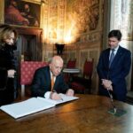 Al termine della cerimonia il presidente dell’ABI Antonio Patuelli ha firmato il libro d’onore in Sala di Clemente VII.