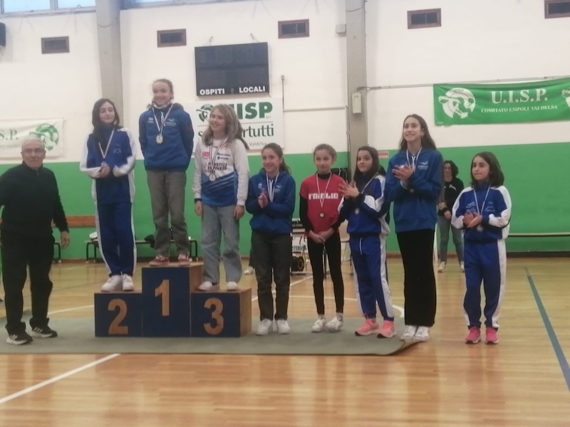Con la cerimonia di sabato scorso, 13 gennaio, al PalAramini di Empoli si è conclusa la prima fase del 2° Criterium Uisp di atletica, organizzato dai comitati Empoli Valdelsa e Zona Cuoio e riservato a bambine e bambini di età compresa tra cinque e dieci anni. Una prima fase che ha visto una straordinaria partecipazione di società e di atlete e atleti, che si sono cimentati in tre prove di corsa campestre. Nel complesso, infatti, sono state 19 le società sportive coinvolte. Per un totale di quasi 300 i partecipanti alle tre gare di Castelfiorentino, San Miniato e Fucecchio. Suddivisi tra Pulcini (nati e nate nel 2018), Esordienti A (2016/2017), Esordienti B (2014/2015) ed Esordienti C (2012/2013), maschili e femminili.
