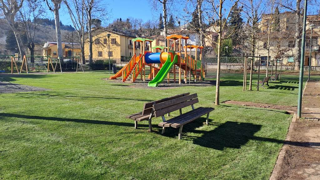 Greve in Chianti, città a misura di bambina e bambino. Si moltiplicano gli interventi, per un investimento complessivo pari a 100mila euro circa, che mirano a riqualificare gli spazi verdi e le aree ludiche attrezzate a favore del benessere dei più piccoli. Un nuovo investimento, realizzato dalla giunta Sottani, è stato realizzato e completato presso i giardini pubblici di Sant’Anna, nel capoluogo. Si tratta della piantumazione del manto erboso dell’area verde, un tappeto naturale composto da un mix di erbe di vario tipo. Poiché è necessario che l’erba attecchisca nei tempi richiesti l’area è stata temporaneamente chiusa e sarà fruibile a partire dal 2 febbraio. L’importo che si è reso necessario si aggira intorno ai 30mila euro. Altro lavoro che interessa i giardini di Sant'Anna, è l’opera di restyling in corso che renderà polivalente il campetto da gioco, implementato come spazio outdoor attrezzato per il basket e il calcetto attraverso la realizzazione di una nuova pavimentazione in resina. In questo caso l'amministrazione comunale ha speso risorse per circa 40mila euro.