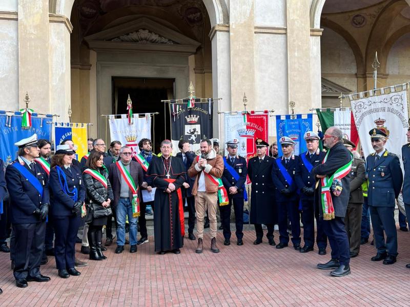 Alle ore 16.00 il porporato ha incontrato nel prato della Chiesa il gruppo cinofilo della Polizia Municipale dell’Unione, per poi recarsi sul sagrato del Santuario dove sono intervenute le autorità: Alessio Falorni (Presidente dell’Unione dei Comuni e Sindaco di Castelfiorentino), e Massimo Luschi (Comandante della Polizia Municipale dell’Unione dei Comuni), alla presenza del consigliere regionale Enrico Sostegni e di tutti i rappresentanti delle forze dell’ordine (Carabinieri, Polizia di Stato, Polfer, Guardia di Finanza, Vigili del Fuoco), delle associazioni di volontariato e del personale in congedo della P.M. Erano presenti i Gonfaloni di tutti gli undici comuni che fanno parte dell’Unione, e un messaggio di saluto è stato inviato dal Sindaco di Montelupo Fiorentino, Paolo Masetti, delegato alla Polizia Municipale dell’Unione.