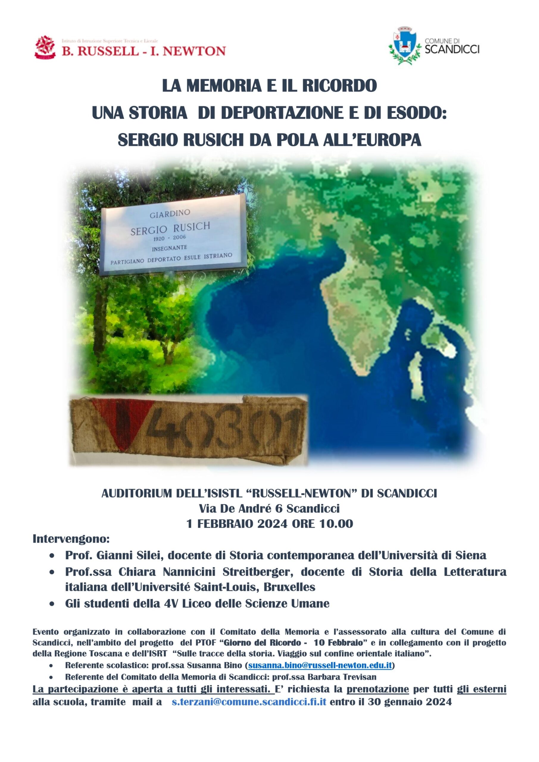 All'incontro, significativo per celebrare sia il Giorno della Memoria che il Giorno del Ricordo, sono invitati tutti gli interessati, con prenotazione obbligatoria inviando una richiesta di partecipazione a s.terzani@comune.scandicci.fi.it.