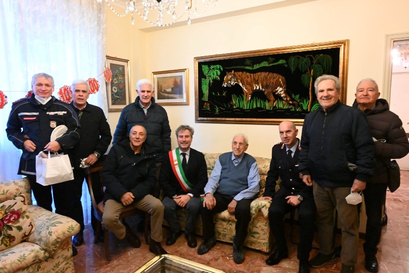 Dopo la celebrazione il sindaco Pardini e il comandante Prina si sono recati a visitare l'agente della Polizia Municipale in pensione Dino Bandoni che proprio oggi sta festeggiando i 100 anni. Entrato in servizio a venti anni nel settembre del 1944 Dino Bandoni ha svolto la sua attività sempre nella Polizia municipale di Lucca dalla quale si è congedato nel 1982 per il pensionamento.