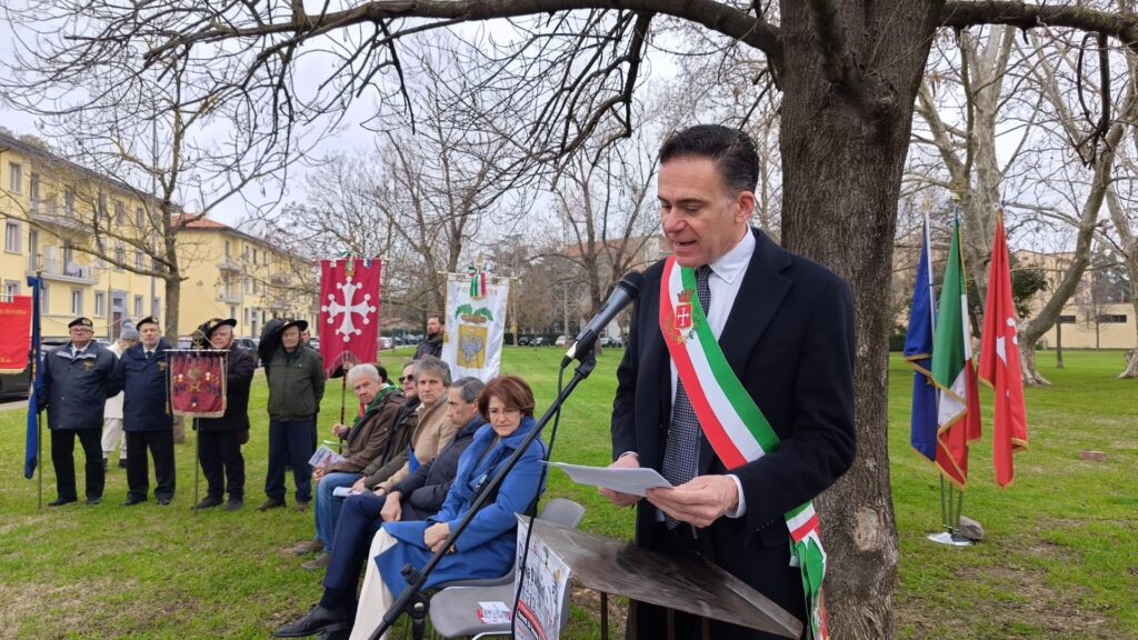 Alla cerimonia, introdotta dagli inni italiano e europeo cantati dal coro dell’Istituto comprensivo “Fibonacci”, sono intervenuti il sindaco di Pisa, Michele Conti, il viceprefetto vicario, Laura Motolese, il Rettore  dell’Università di Pisa, Riccardo Zucchi, il presidente del Consiglio regionale, Antonio Mazzeo, il presidente della Provincia di Pisa, Massimiliano Angori, il presidente della Comunità Ebraica di Pisa, Andrea Gottfried, il presidente dell’ANPI sezione di Pisa, Bruno Possenti, il presidente del Consiglio Comunale, Alessandro Bargagna, e il vicepresidente del Consiglio comunale di Pisa, Antonietta Scognamiglio. Al termine della cerimonia è stato presentato il bozzetto della stele lapidea a ricordo del cambio di nome della strada che verrà posizionata nell’area verde, a cura dell’artista Andrea D’Aurizio.