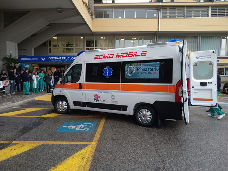 Sara, due mesi di vita, è stata la prima paziente a salire sull’Ecmo Mobile, la nuova ambulanza pensata e realizzata su misura per accogliere l’Ecmo Team Pediatrico dell'Ospedale del Cuore di Massa e le sue attrezzature, indispensabili per l’impianto della macchina cuore-polmoni.