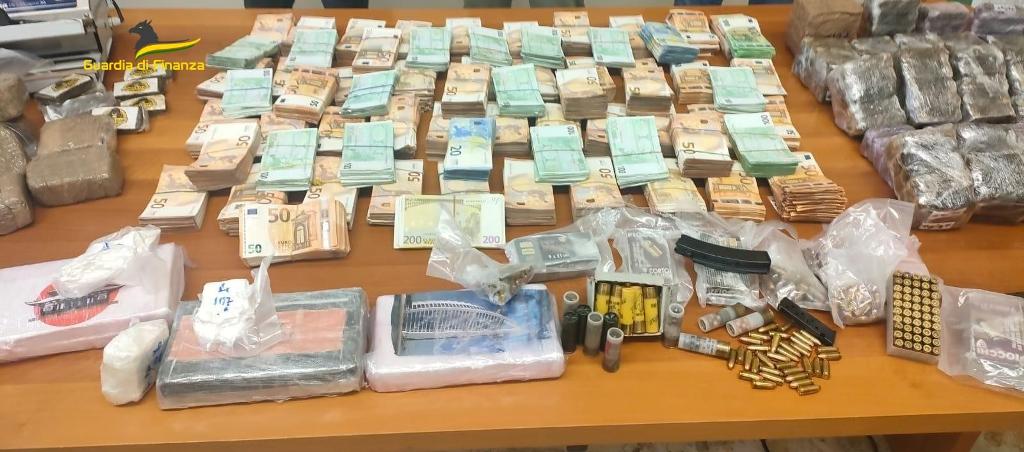Durante le indagini sono avvenuti due arresti in flagranza di reato e sono stati sequestrati 100 kg di marijuana e hashish, oltre 5 kg di cocaina, 676mila euro in contanti, 2 pistole e oltre 500 cartucce.