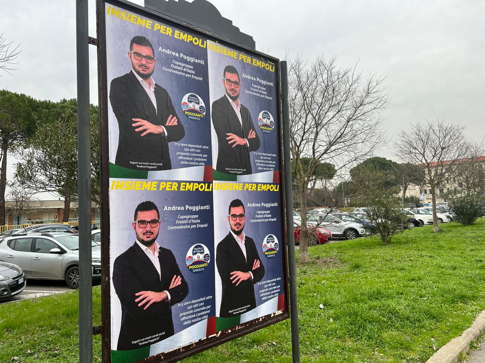 Stanno apparendo in varie parti di Empoli i manifesti a sostegno di Andrea Poggianti, capogruppo di Fratelli d'Italia-Centrodestra per Empoli in Consiglio comunale.