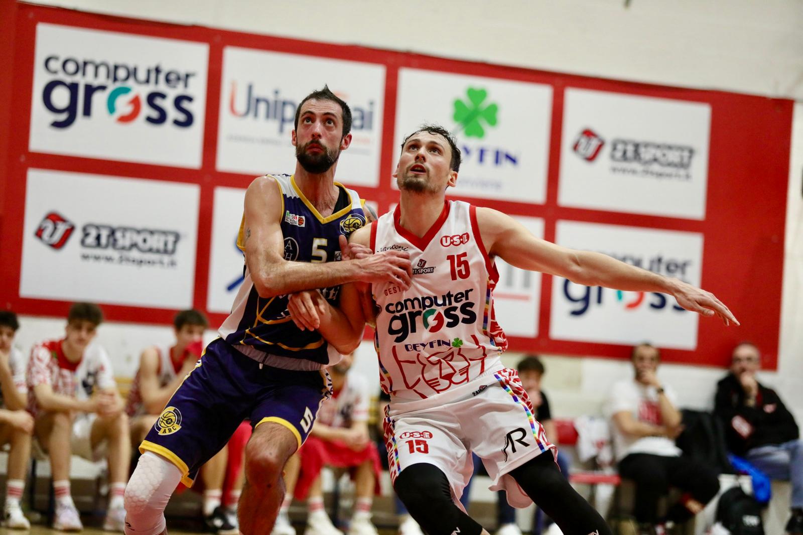 Dopo la palla a due in campo pare esserci solo la Computer Gross che, con un ottimo Mazzoni, schizza subito 8-0. Pucci, il migliore dei suoi, muove il tabellino valdelsano ma Cerchiaro e Mazzoni martellano ancora obbligando Angiolini al timeout. Belli trova la prima tripla e Nepi riporta Castello sul 18-14, prima che Giannone metta sulla sirena i liberi del 24-16. La tripla di Pucci riapre le danze e qui va in trance da derby capitan Sesoldi che festeggia la presenza 401 con la maglia biancorossa per mandare in estasi il pubblico con tre triple consecutive: 35-19. Scali ferma la marea biancorossa ma Cerchiaro, subito dopo, firma il massimo vantaggio: 40-21. Qui, inevitabilmente, Castello deve scuotersi e lo fa con un 4-12 che manda le squadre al riposo sul 44-33 e i gialloblù con la speranza di rientrare. Al ritorno in campo ci sono tre minuti zeppi di errori, col primo canestro di Nepi dopo 3 minuti: 44-35. Il vantaggio scala dalla doppia cifra ed a dilatarlo ancora ecco un 6-0 dall’arco a firma Cerchiaro-Giannone. Stesso poco dopo con Zaiets che firma il 50-39 e De Leone-Giannone a rispondere col 55-39. In questo finale l’Use gioca pure bene e De Leone suggella una bella circolazione di palla con 57-39 del 30’. L’ultimo sussulto castellano è del solito Pucci, uno 0-5 per il 57-44. Poi è solo Computer Gross con Mazzoni-Calabrese per il 62-44, momento dal quale il derby si trascina solo per arrivare al finale di 73-56.