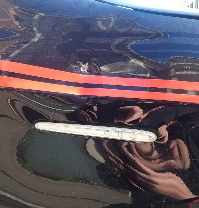 L'auto dei carabinieri danneggiata dalle tegole lanciate
