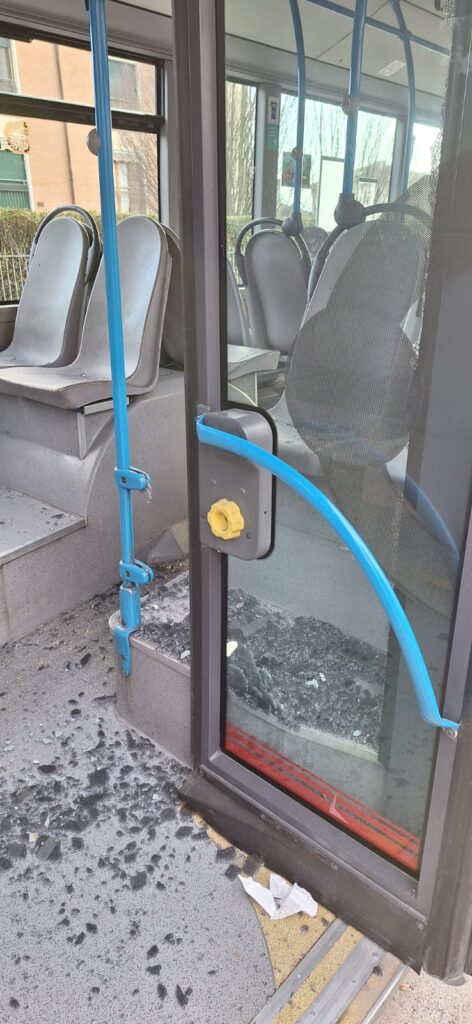 Vetro della porta del bus spaccato e corsa saltata. È quanto accaduto stamani, all’altezza della fermata di via Marsala a Pisa verso le 7:40 sulla Linea 190 delle 7:30 che da Pisa arriva a Cascina.