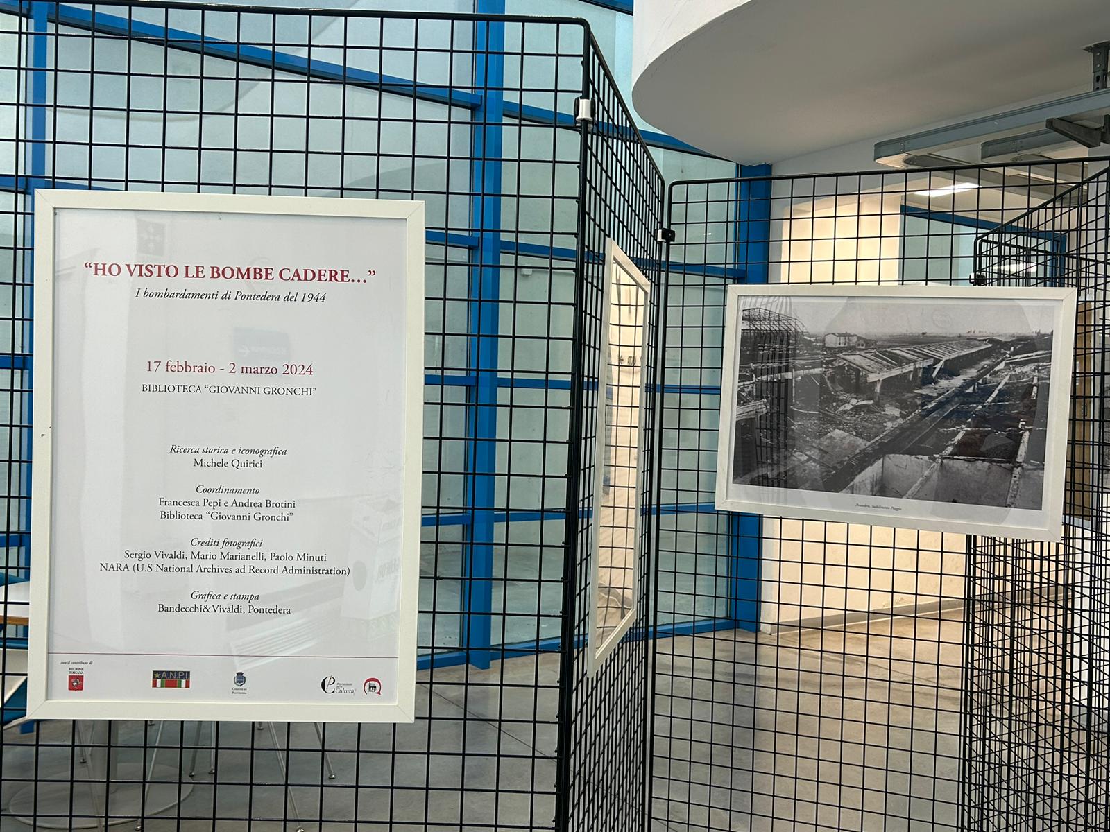 L'esposizione, alla biblioteca Giovanni Gronchi, dal titolo "Ho visto le bombe cadere", ripercorre quei giorni drammatici con una documentazione, in parte recuperata dagli archivi storici, di grande impatto visivo. Alla fine del secondo conflitto mondiale Pontedera contò quasi 400 morti e oltre mille feriti su una popolazione che allora non raggiungeva i 20mila abitanti e più della metà delle abitazioni furono distrutte o danneggiate, così come anche scuole e fabbriche.