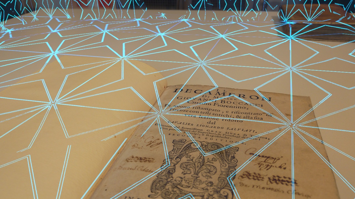 Madre dei Santi Jacopo e Filippo e le pagine della copia originale del “Decamerone”, in un'inedita ed affascinante rilettura del passato storico, artistico e letterario italiano tra visione analogica e digitale.