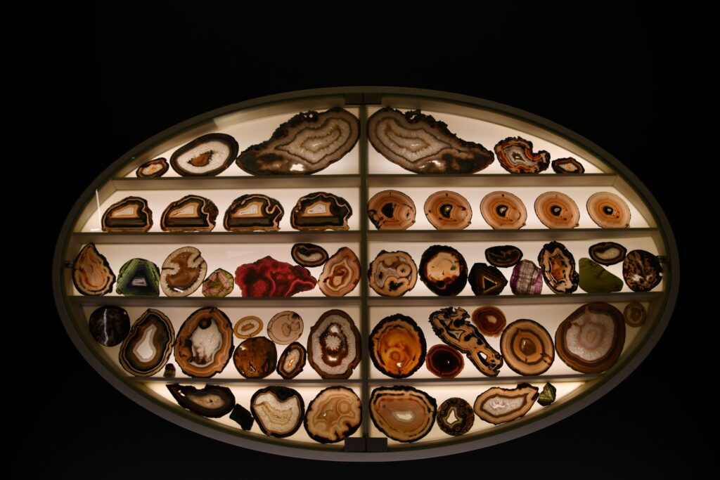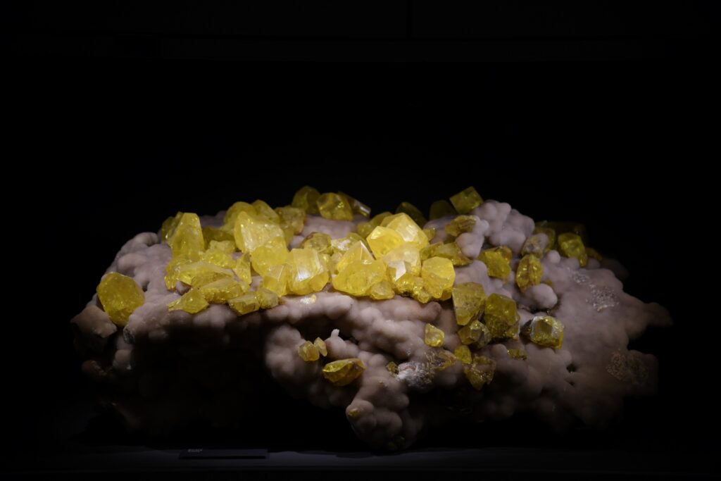 Lesposizione illustra anche l’evoluzione dei minerali attraverso i quattro miliardi e mezzo di storia del nostro pianeta e del Sistema Solare - dai pochi minerali delle meteoriti, alle migliaia di minerali oggi conosciuti – e consente di ammirare campioni unici al mondo, dalle tormaline ed ematiti dellElba allo zolfo della Sicilia, fino agli enormi cristalli di topazio e acquamarina del Brasile.