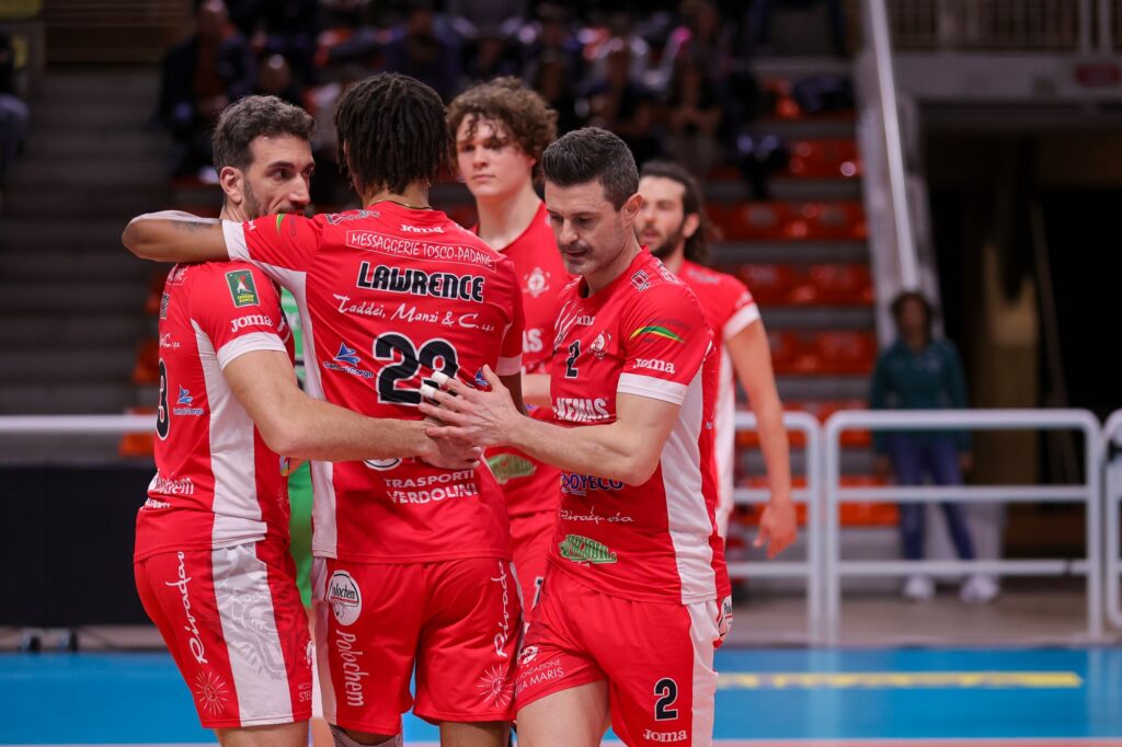 Castellana Grotte, nell’ultimo turno, è uscita a mani vuote dal difficilissimo campo di Siena. Coach Cruciani ha schierato in regia il giovane prospetto, classe 2004, Alessandro Fanizza, in diagonale con il colombiano Bermudez, giocatore esperto, con una efficienza media in campionato del 43,6%. In banda, come già nella gara di andata a S. Croce sull’Arno, il barese Nicola Cianciotta e il trevigiano Alberto Pol, classe 2001 come il collega di reparto, al terzo anno di A2 in fila dopo le esperienze a Porto Viro, Motta di Livenza via Ravenna, e Castellana Grotte. A Siena la panchina New Mater ha gestito l’alternanza al centro tra Nicolò Cicolella, altro giovane nato nel 2004, e il tarantino Cosimo Balestra, ex Vibo. Sicuro del posto dovrebbe essere Victorio Ceban, anch’egli, come Pol, proveniente da Ravenna. Libero è il “ragazzo di casa” Leonardo Battista, tornato al Pala Grotte dopo l’esordio del 2013-14 e il triennio 2017-2020.