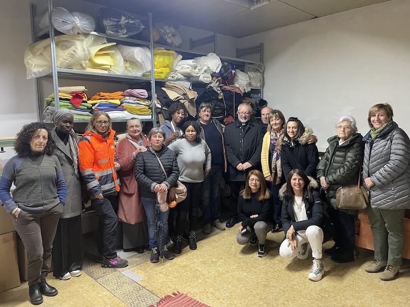 ‘Bazin’ è un ‘laboratorio socio-occupazionale’, una piccola bottega di riparazioni sartoriali e vendita, ma anche un luogo che dialoga con la comunità: oltre ai corsi di formazione rivolti a persone seguite dalle politiche sociali, si sono svolti corsi di cucito con la Società della Salute, corsi rivolti a donne sottoposte a chemioterapia a Torregalli per la realizzazione dei turbanti, iniziative con studenti, scout o iniziative per bambini con la libreria Blume. È stata addirittura fatta la collaborazione con una casa di moda fiorentina per realizzare una linea di abbigliamento. Negli anni sono passate da qui oltre 50 donne, alcune di queste hanno trovato anche importanti posti di lavoro nel settore della moda. Dopo alcuni cambi di sede, il laboratorio ha trovato casa nei locali in Corso Giuseppe Mazzini. Il progetto non è un’attività imprenditoriale e si sostiene solo grazie al supporto dell’Amministrazione Comunale, all’8xmille e alle donazioni. Un’attività che vede l’impegno di tanti volontari per dare opportunità alle persone in difficoltà come Mané, senegalese, dal 2007 in Italia, ‘storica’ volontaria che è colonna del progetto e che dal progetto ha trovato un’ancora di salvezza: "Io sono venuta dal Senegal in Italia nel 2007 - ha raccontato commossa Mané al vescovo - La Cooperativa mi ha proposto la cosa, ero disoccupata, e ho iniziato come volontaria. Partivamo da zero. La Cooperativa mi ha anche offerto un lavoro e mi ha aiutato tantissimo. Poi con due figli sono andata in Francia con mio marito per lavorare lì, ma non è andata bene. Gioia mi chiedeva sempre come stavo, poi sono tornata e sono stata accolta a braccia aperte. Mi hanno aiutato a trovare casa, mi hanno offerto immediatamente un contratto come addetta delle pulizie. Sono una famiglia, non lo dimenticherò mai".