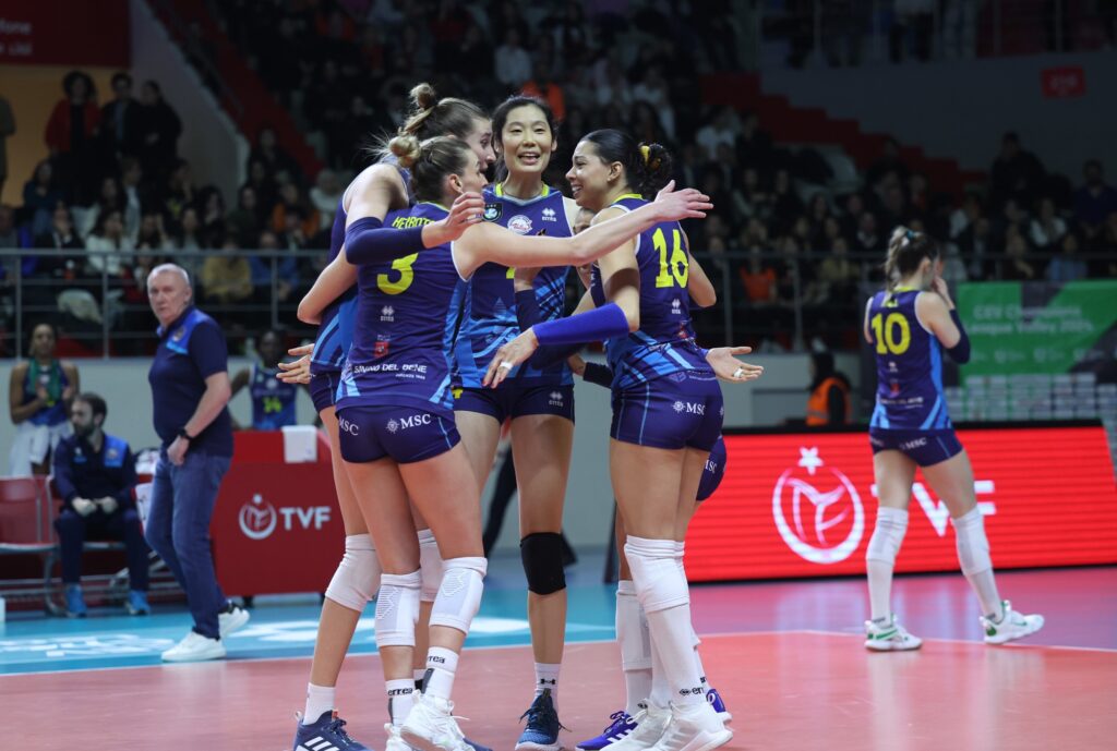 C'è rammarico per la Savino Del Bene Volley, che si è aggiudicata la battaglia dei muri per 14-9, quella degli ace per 13-3 ed ha fatto registrare anche migliori numeri in ricezione, ma nonostante una prestazione sicuramente migliore rispetto a quella offerta nella sfida d'andata disputata una settimana fa in Turchia, si è comunque dovuta inchinare dopo due ore e diciassette minuti di gioco.