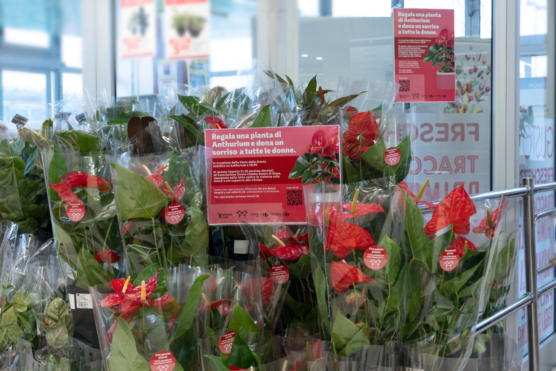 L’iniziativa. Fino al 17 marzo nella rete dei negozi di Etruria Retail sarà in vendita una pianta di Anthurium, al prezzo promozionale di 9,90 euro. Per ogni pianta venduta verrà donato un contributo di 1,50 euro all’associazione che verrà raddoppiato da Etruria. Per ogni pianta acquistata dai clienti, per tanto, sarà effettuata una donazione di 3 euro all’associazione “Donna chiama Donna”.