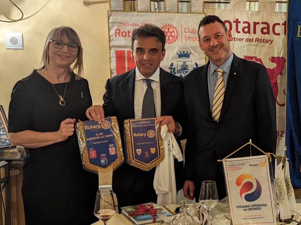Emanuele Amodei, Presidente del Club Lorenzo il Magnifico, nel salutare tutti i presenti ha sottolineato l’importanza di questi interclub che arricchiscono i rapporti umani fra i soci consolidando l’amicizia e la condivisione che sta alla base dell’operare Rotariano.