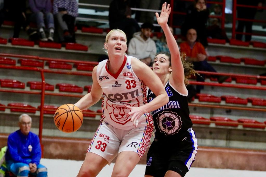 Contava vincere e la vittoria è arrivata. Missione compiuta per l’Use Rosa Scotti che batte la Stella Azzurra Roma per 65-50 facendo così un altro passettino in avanti verso l’obiettivo playoff. Come capita sempre in questo tipo di partite dove il pronostico ti obbliga a non sbagliare, lo spettacolo non ne guadagna ma, in fin dei conti, la squadra di Alessio Cioni fa quello che deve fare e mai, durante l’arco dei 40 minuti, perde il controllo della gara. Poi, quando le cose non vanno benissimo, basta andare da Miscenko ed il gioco è fatto. La pivot lettone chiude con un’altra doppia/doppia da 18 punti e 17 rimbalzi e, alla sua ombra, si conferma il momento positivo della varie Villaruel, Ruffini e Patanè. Ora la sosta per la Coppa Italia, poi la doppia trasferta a Carugate e Torino, un passaggio forse decisivo per centrare l’obiettivo che, è bene non dimenticarlo, è tutt’altro che scontato visto l’alto livello di questo girone.