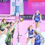 Nel terzo c’è Acciarri per Graziani, e ancora una volta la prima parte del parziale è equilibratissima, con Kraiduba e Alsmeier che provano a sparigliare le carte sul 17-14 e con Pistola che deve chiamare time out sul 19-16 firmato da Mazzaro con un monster block: Alsmeier allunga ancora con l’ace del 21-17, Pistola inserisce Cecconello per Mancini e l’errore di Ishikawa vale il 21-19 e il conseguente time out di Parisi, poi le bisontine riescono a tenere il cambio palla ma sul 24-21 Degradi annulla due set point, e dopo il time out di Parisi anche il terzo (24-24), fino ad arrivare al 24-26 concretizzato dall’errore in attacco di Acciarri e dal primo tempo di Aleksic.