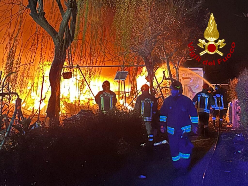In una proprietà privata lungo il Canale Imperiale l'incendio si era propagato anche a una struttura provvisoria e un camper.